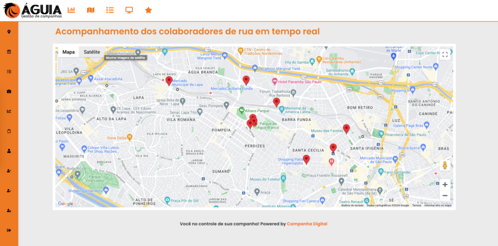 Ferramenta essencial para a organização política e administrativa de pré-campanhas e campanhas eleitorais por meio da gestão visual de bancos de dados integrados, apresentando informações de diferentes origens.